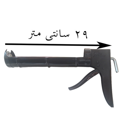 دستگاه تمام فلزی چسب تفنگی آکواریوم با بسته یک عددی می باشد.جنس این دستگاه از فلز مرغوب بوده و طول آن 29 سانتی متر می باشد.این دستگاه تفنگی مناسب برای استفاده چسب آکواریوم می باشد.دستگاه چسب آکواریوم تفنگی ابزار کاملا فلزی است و در رنگ مشکی بسیار زیبا موجود است ساختار تفنگ چسب اکواریوم از یک دسته ی فنری فلزی و یک بدنه فلزی و یک میله بلند که یک طرف آن شیار دار است تشکیل شده است.