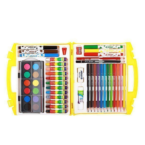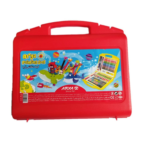 اقلام همراه12آب رنگ 12مداد رنگی مداد سیاه (گرافیت) HB مداد قرمز 6رنگ نشانگر چسب تراش پاک کن 12رنگ پاستل روغنی