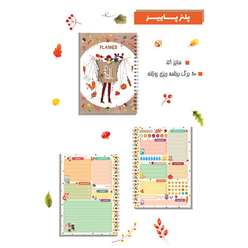 پلنر یا دفتر برنامه ریزی یک روش بسیار خوب برای نظم بخشیدن و هدفمند نمودن کارهایی است که در زندگی روزمره با آنها سر کار دارید، این کار ها میتواند شامل خرید کردن، رژیم غذایی و عادات روزانه و یا ماهانه باشند. دفترچه برنامه ریزی طرح پاییز 80 برگ بوده که یکی از دفترهای محبوب بازار است و برای استفاده همه سنین انتخاب مناسبی است. مزیت رقابتی این پلنر نسبت به سایر دفترها، علاوه بر وزن بالای کاغذ و کیفیت و جلد گلاسه که محافظ خوبی برای کاغذ‌ها است .هدیه ای بسیار زیبا و مرغوب برای عزیزان می باشد .