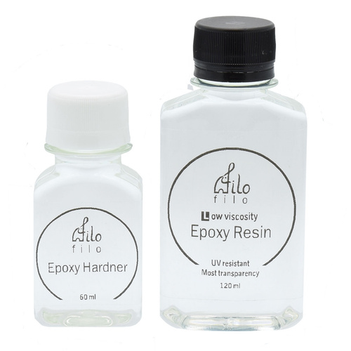 رزینهای اپوکسی مایعاتی دو جزئی هستند که پس از ترکیب شروع به سخت شدن و تشکیل جامدی شیشهای شکل میکنند. رزینهای اپوکسی با غلظتهای متفاوت دارای ویژگیها و کاربردهای متفاوتی هستند. خروج حباب از رزینهای رقیق راحتتر صورت گرفته و این رزینها به سرعت روی سطوح و داخل قالبها را پر کرده و کاربرد بهتری در هنر چوب و رزین دارند. همچنین رزینهای غلیظ را میتوان برای ایجاد سطوح خارجی محدب و ایجاد افکت حباب داخل رزین به کار برد. رزین اپوکسی رقیق فیلو با نسبت ترکیب دو واحد رزین به یک واحد هاردنر دارای شفافیت بسیار بالایی است و مقاومت بسیار خوبی نسبت به زرد شدن در مرور زمان دارد. تمامی نکات کاربردی مورد نیاز برای کار با این رزین توسط مبتدیان به همراه محصول در یک بروشور آموزشی به زبان فارسی ارائه شده است. گفتنی است که این رزین قابل استفاده روی بوم نقاشی و چوب است. همچنین رنگ آن بیرنگ شفاف است.
