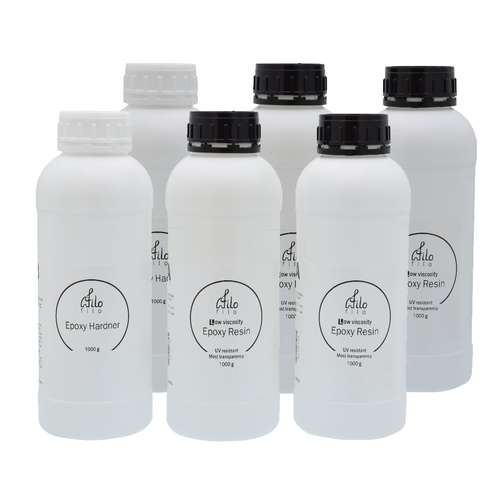 رزین‌های اپوکسی مایعاتی دو جزئی هستند که پس از ترکیب شروع به سخت شدن و تشکیل جامدی شیشه ای شکل می‌کنند. رزینهای اپوکسی با غلظت‌های متفاوت دارای ویژگی‌ها و کاربردهای متفاوتی هستند. خروج حباب از رزین‌های رقیق راحت تر صورت گرفته و این رزینها به سرعت روی سطوح و داخل قالبها را پر کرده و کاربرد بهتری در هنر چوب و رزین دارند. همچنین رزین‌های غلیظ را می‌توان برای ایجاد سطوح خارجی محدب و ایجاد افکت حباب داخل رزین به کار برد. رزین اپوکسی 6 کیلوگرمی رقیق فیلو با نسبت ترکیب دو واحد رزین به یک واحد هاردنر دارای شفافیت بسیار بالایی است و مقاومت بسیار خوبی نسبت به زرد شدن در مرور زمان دارد. تمامی نکات کاربردی مورد نیاز برای کار با این رزین توسط مبتدیان به همراه محصول در یک بروشور آموزشی به زبان فارسی اراِئه شده است.