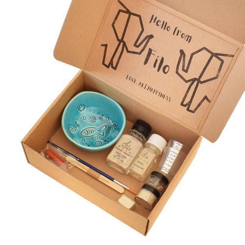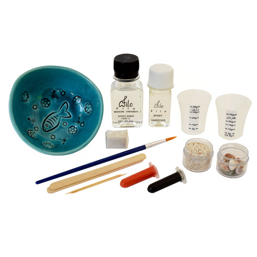 یکی از رسوم زیبای ما ایرانی ها چیدن سفره هفتسین برای پیشواز سال نو است. ماهی قرمز عید یکی از دوست داشتنی ترین بخشهای سفره هفت سین است که نشانگر سرزندگی، حرکت و سلامتی است، اما در سال های اخیر و افزایش توجه به حقوق حیوانات پیشنهاد میشود به جای استفاده از ماهی واقعی، ازحوض ماهی رزینی استفاده کنیم. هیچکس در نگاه اول متوجه واقعی نبودن این ماهی ها نمیشود. بسته کار با رزین فیلو باکس مدل ماهی سه بعدی یک مجموعه کامل برای افرادی است که تا به حال تجربه کار با رزین اپوکسی را نداشته اند. این بسته شامل تمام ابزار و مواد مورد نیاز شما برای ساختن یک حوض ماهی زیباست. همچنین این مجموعه شامل یک بروشور آموزشی برای یادگیری اصول اولیه کار با رزین اپوکسی برای کسانی است که تا به حال از رزین اپوکسی نکرده اند. همچنین شما می توانید با اسکن QR کد موجود در بسته بندی محصول توسط موبایل خود به ویدیو آموزشی این بسته کار با رزین دسترسی پیدا کنید. این پک محتوی: 90 گرم رزین نیمه رقیقُ، خمیر مجسمه خشک نشو، رنگ اکریلیک نارنجی و مشکی، قلممو، ظرف سرامیکی فیروزه ای به قطر 10 سانتیمتر، پیمانه اندازه گیری، صدف، ماسه و چوب بستنی مخصوص هم زدن رزین است.